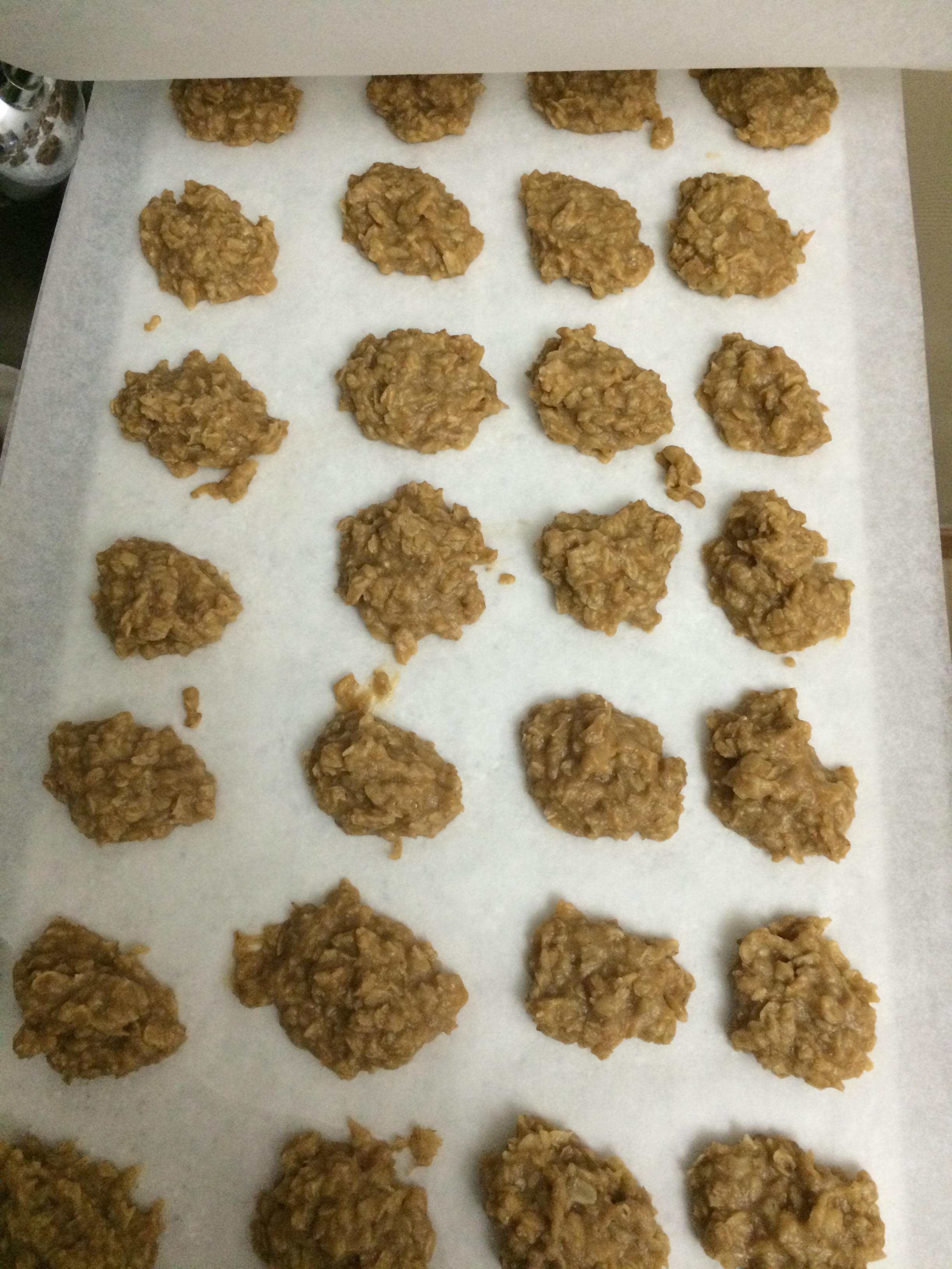 I had a hankering for cookies and I needed to bring some food for a party so I went with the stove-top option. You just boil the butter, sugar, and milk for one minute and then turn off the heat and add the rest of the ingredients. Drop spoonfuls onto wax paper and put them in the refrigerator until they cool.