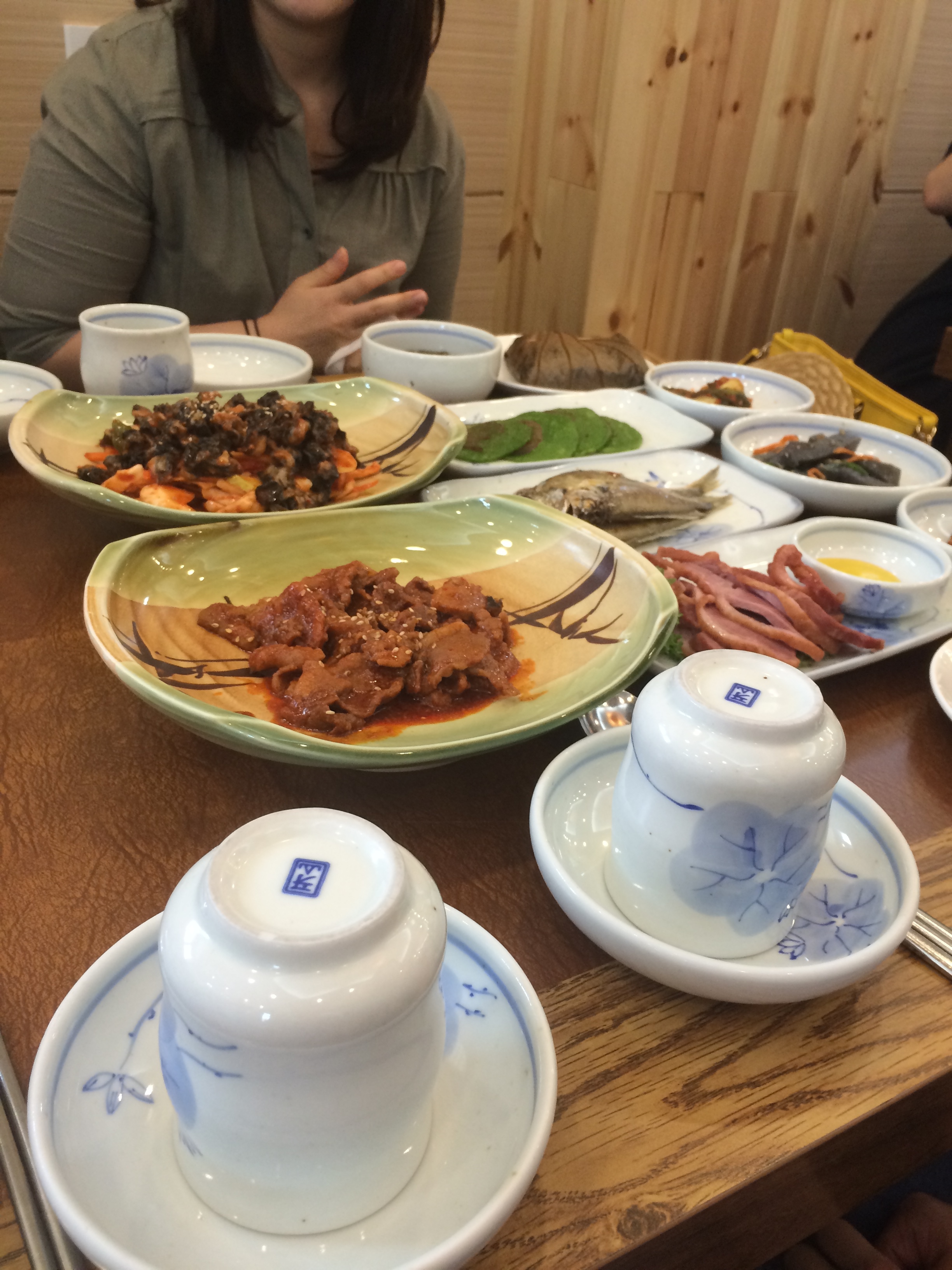 It took just over an hour to get to the garden from school, but first we needed sustenance. We went to a traditional restaurant, which means you’re sitting on the floor, and had rice cooked in a lotus leaf along with spicy whelks and beef stew.