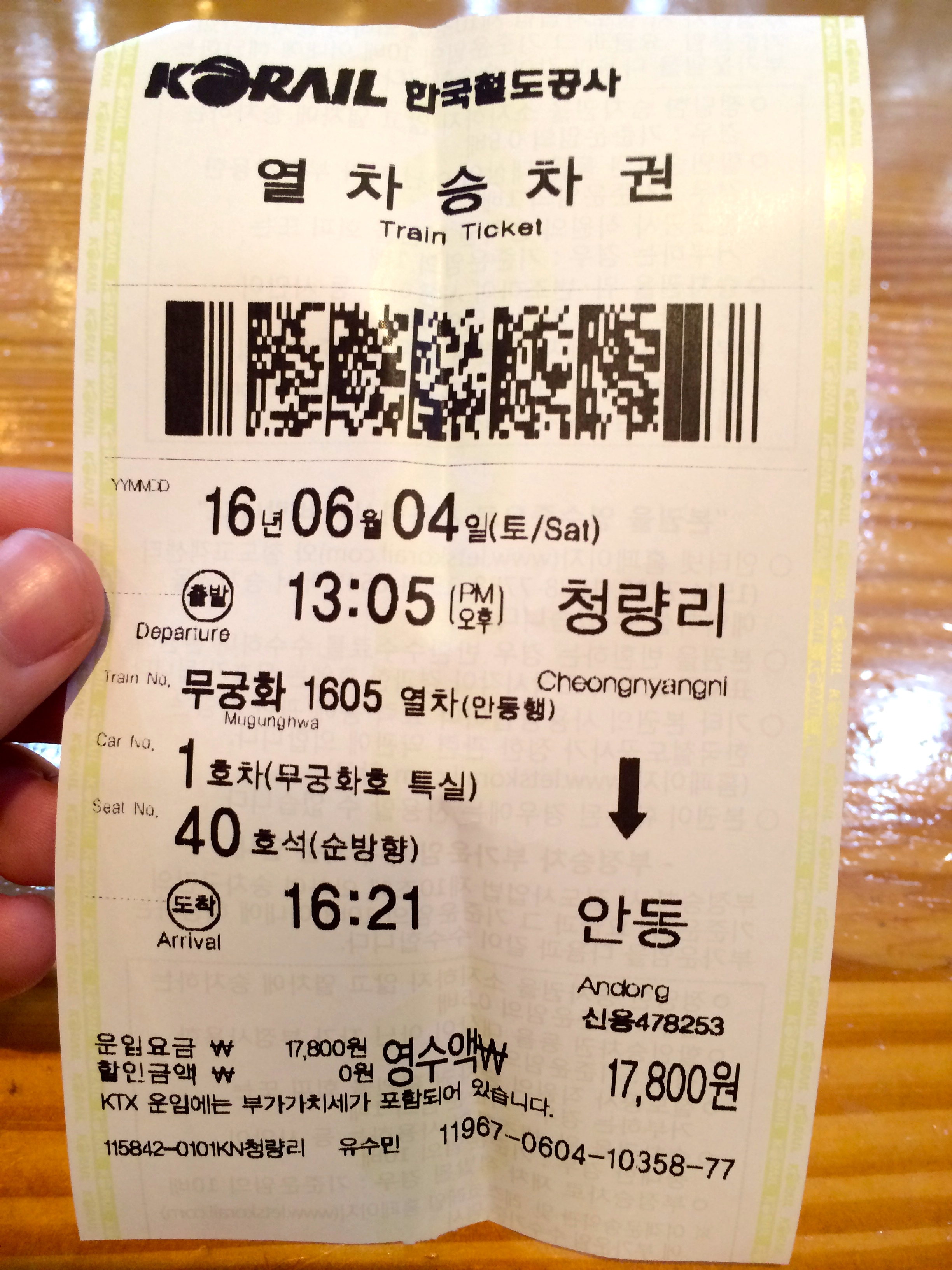 I went to Andong for a long weekend. No KTX trains go to Andong station so I had to take the slow mugunghwa train from Cheongnynagni station.
