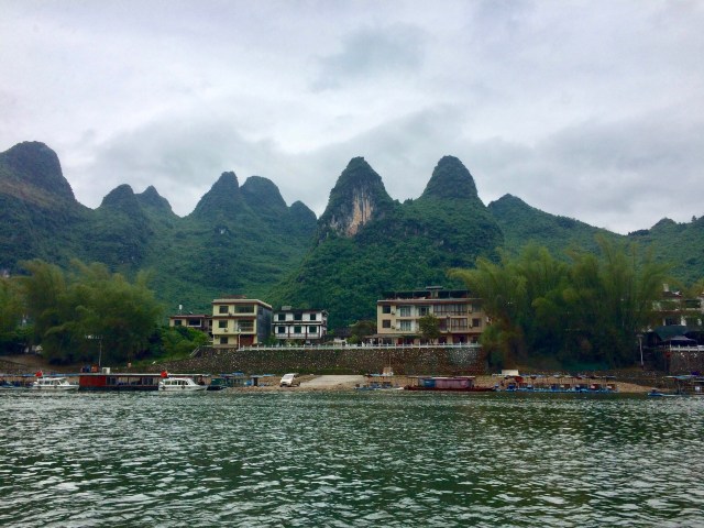 I took a tour boat down the Li River from Guilin to Yangshuo county. We floated down the river for a few hours, walked around Yangshuo, and took a bus back to Guilin. There were several different tour boats and I can’t imagine how many tourists would be in Yangshuo if the weather was better.